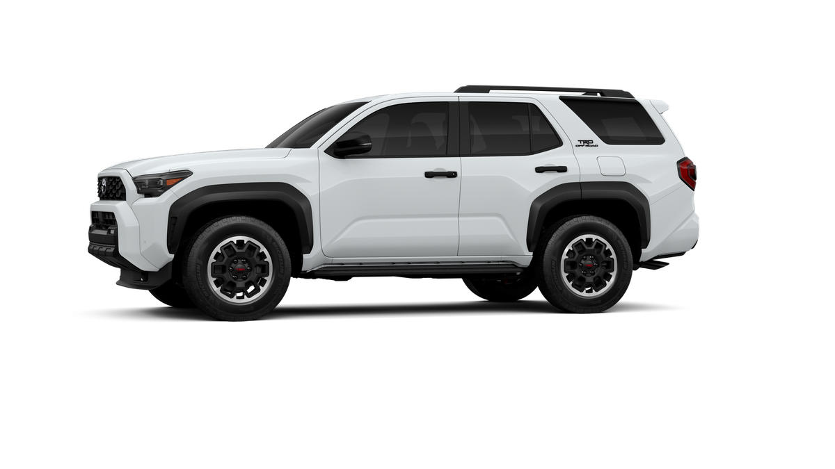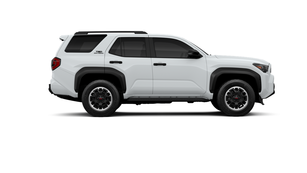 - Black honeycomb-style grille, mirror caps, door handles and overfenders; color-keyed rear spoiler; black "TRD OFF ROAD" and "4RUNNER" badges