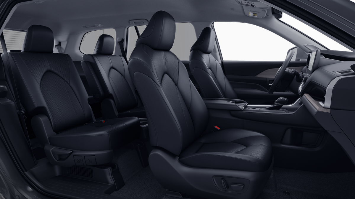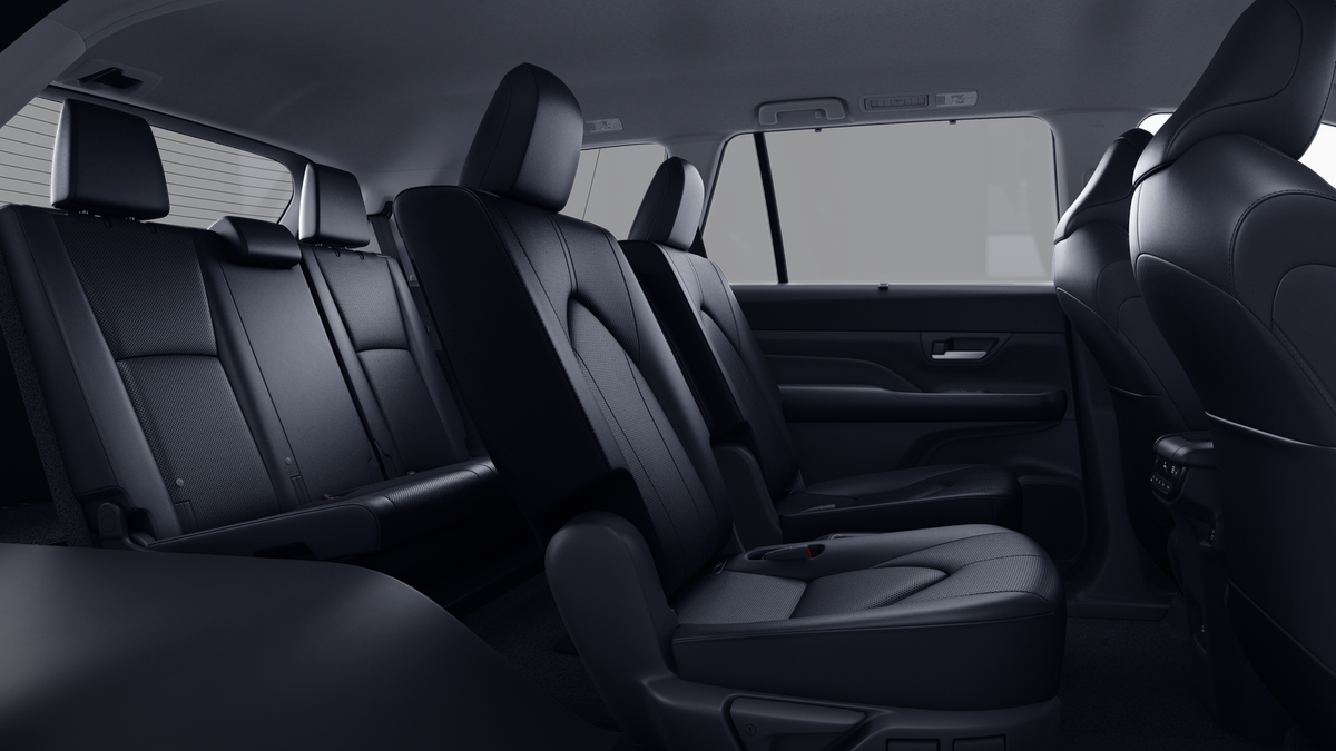 - 7-passenger seating with second-row fold-down captain's chairs and fold-down inboard armrests, adjustable headrests and two cup holders mounted on the floor; and 60/40 split, fold-down third-row seats with sliding headrests and recline function