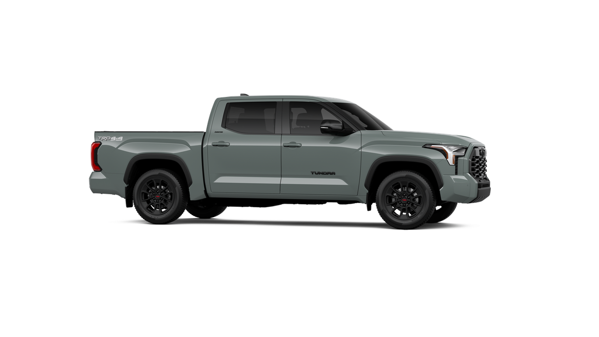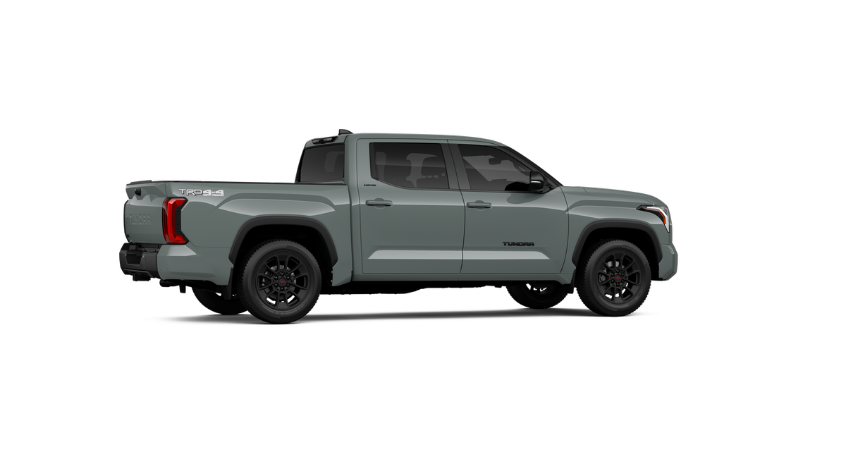 - Chrome "TUNDRA" and "LIMITED" door badges, door handles and window molding; color-keyed mirror caps and tailgate spoiler; gray-painted overfenders