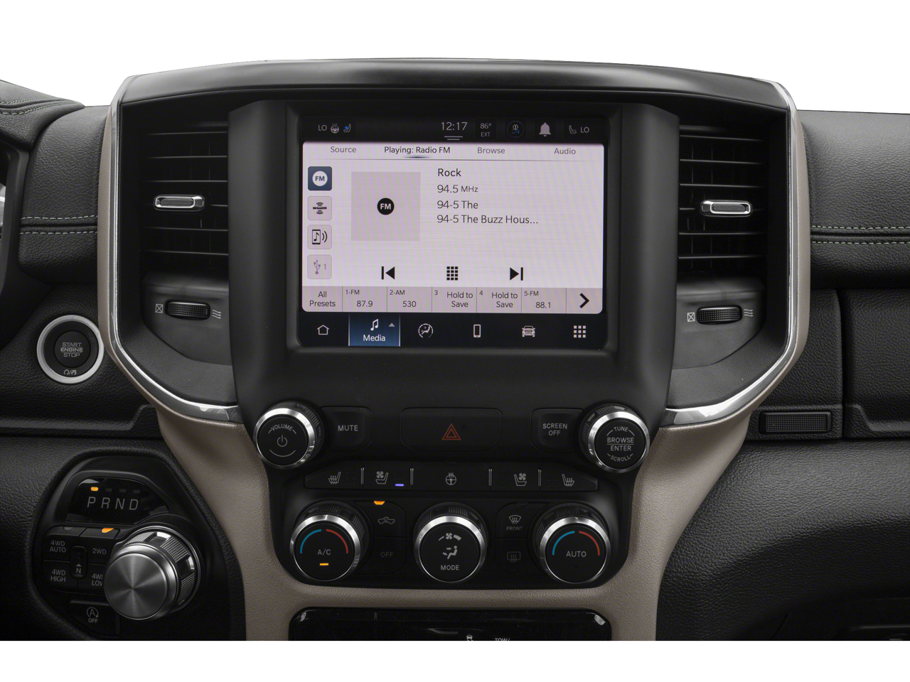 The interior of this Ram 1500 Laramie is a true sanctuary, with premium leather-trimmed seats, dual-zone automatic climate control, and a host of advanced tech features. Enjoy the convenience of the Uconnect 5 infotainment system with an 8.4 display, Apple CarPlay, and a 4G LTE Wi-Fi hotspot. The Blind Spot and Cross Path Detection system, along with the ParkSense Front/Rear Park Assist, provide added peace of mind on the road.