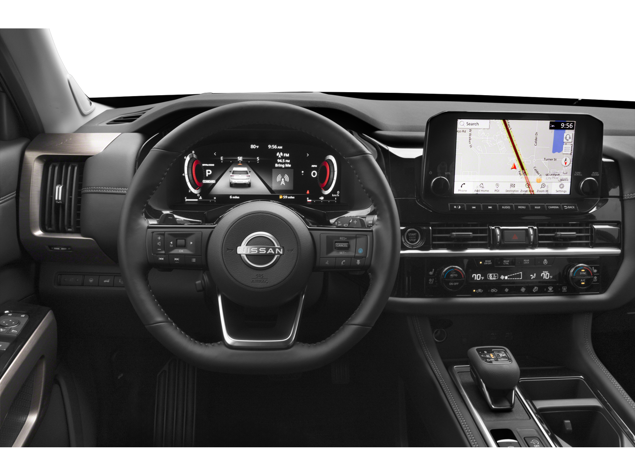 Auto High-beam Headlights, Auto tilt-away steering wheel, Auto-dimming Rear-View mirror, Automatic temperature control, Bench Seat Carpeted Floor Mats (Set of 4), Bose Premium Audio System, Emergency communication system, Exterior Parking Camera Rear, Four wheel independent suspension, Front dual zone A/C, Garage door transmitter: HomeLink, Heads-Up Display, Heated & Cooled Front Bucket Seats, Heated rear seats, Memory seat, Navigation system: NissanConnect with Navigation and Services, NissanConnect featuring Apple CarPlay and Android Auto, NissanConnect w/Navigation & Services, Power Liftgate, Power moonroof, Radio: AM/FM Audio System, Rear air conditioning, Remote keyless entry, Semi-Aniline Leather-Appointed Seating Surfaces, Steering wheel memory, Steering wheel mounted audio controls, Telescoping steering wheel, Tilt steering wheel, Wheels: 20 x 8J Machined Alloy.