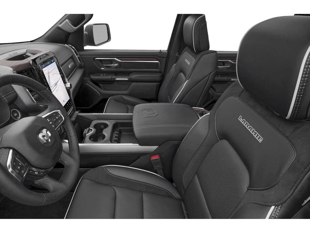 Apple CarPlay/Android Auto, Auto High-beam Headlights, Automatic temperature control, Bed Utility Group, Convex Wide-Angle Exterior Mirror Insert, Driver Seat Memory, Exterior Mirrors w/Memory, Front dual zone A/C, Front fog lights, Heated front seats, Heated rear seats, Laramie Level 1 Equipment Group, MOPAR 4 Adjustable Cargo Tie-Down Hooks, MOPAR Front & Rear Rubber Floor Mats, MOPAR Spray In Bedliner, Navigation System, ParkView Rear Back-Up Camera, Power 2-Way Driver Lumbar Adjust, Power 2-Way Passenger Lumbar Adjust, Power Adjust 8-Way Front Passenger Seat, Quick Order Package 21H Laramie, Radio: Uconnect 5 Nav w/12.0 Display, Rain Sensitive Windshield Wipers, RAM Grille Badge - Chrome, Rear step bumper, Remote keyless entry, Remote Tailgate Release, Steering wheel mounted audio controls, Telescoping steering wheel, Tilt steering wheel, Trailer Brake Control, Ventilated Front Seats, Wheels: 20 x 9 Premium Paint/Polish.